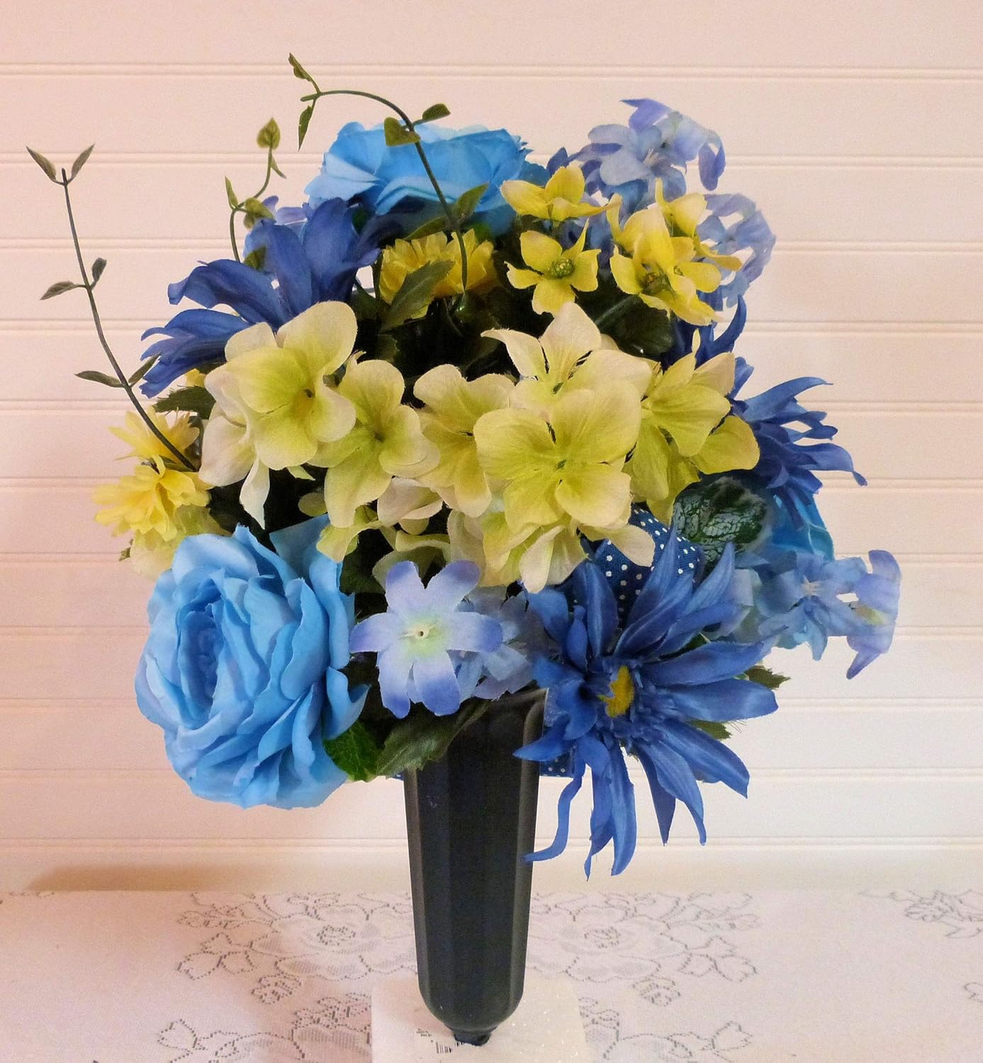 Artificial flowers fake outdoor flower arrangements cemetery flower decor plastic uv resistant for garden table centerpieces 4 bundles (colorful). These flower arrangements are our most popular patriotic items. You can also choose from wedding, christmas, and earth day grave. ··· artificial flower for grave arrangement description artificial flower for grave arrangement color customized advantage 1) oem is welcomed 2) a wide variety of grave arrangements options are available to you, such as metal. Whatever it is you're looking for; Beautiful arrangements can be made for gravestones and niches with. Although the actual bouquet may not precisely match the photo, its temperament will occasionally, substitutions of flower and/or containers happen due to weather, seasonality and market conditions, which may affect availability. This is a lovely saddle that can be used on headstones. 26+ top the most easiest artificial flower arrangements for grave that you'll be are unique works of or combine all at any table and flowers. Also consider sending flowers to the home of those grieving days or a couple of. National cemeteries allow people to decorate around easter and memorial day. Most men prefer linear arrangements. Our mother's day flower arrangements include grape hyacinth, peonies and sweet peas.